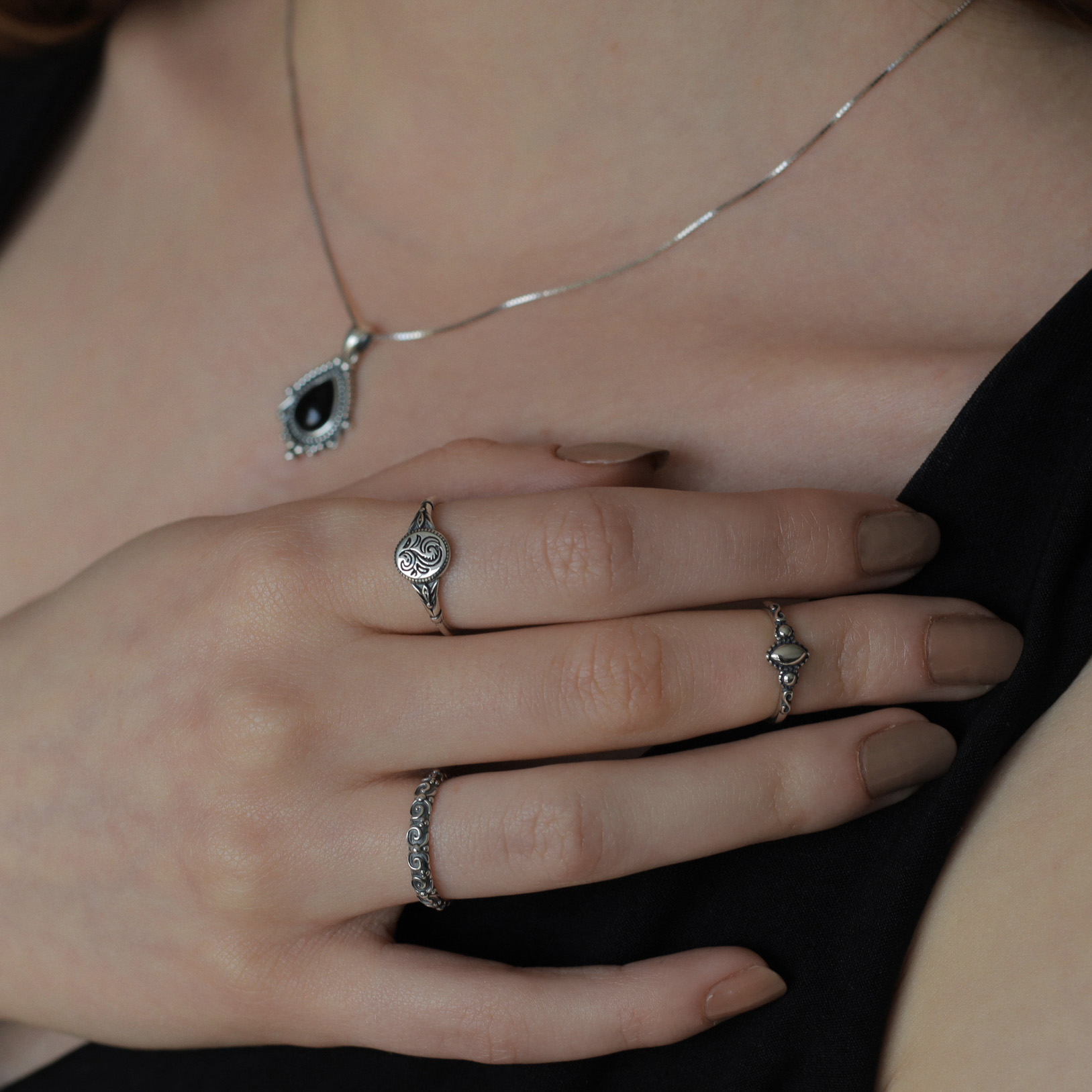 Modèle minimaliste en argent oxydé, qui apportera du charme à n’importe quelle tenue