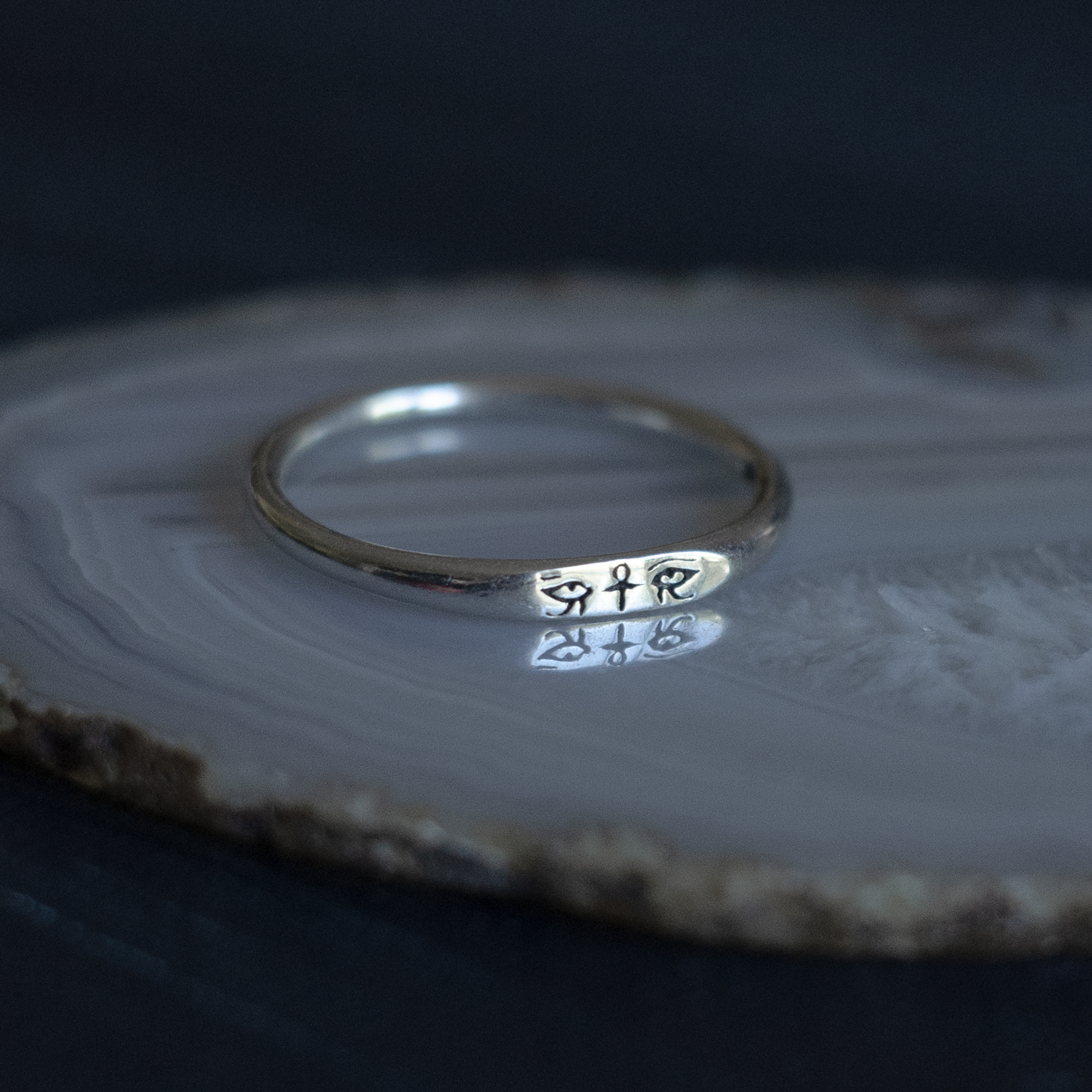 Bague minimaliste en argent avec des yeux égyptiens